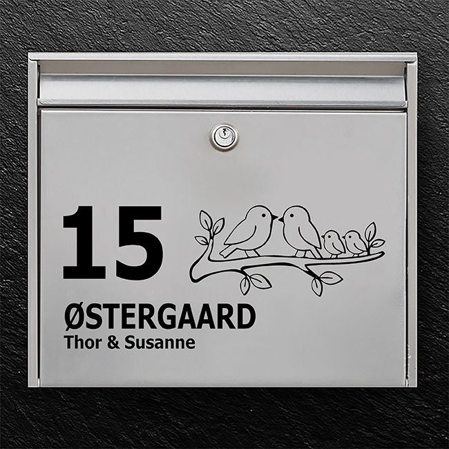 Postkasseskilt:  Postkassesticker med fugle på gren